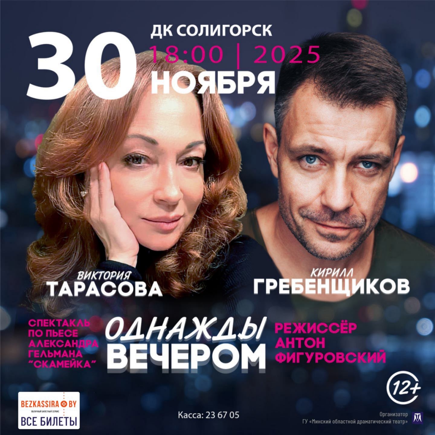 Спектакль «Однажды вечером» пройдёт в ДК г. Солигорска