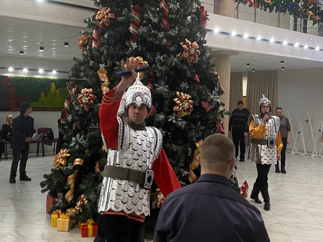 В ходе представления звучали зажигательные новогодние песни, которые поднимали настроение и заставляли танцевать вместе со сказочными героями. Участники активно участвовали в интерактивных играх, помогая богатырям преодолевать трудности и спасать праздник.