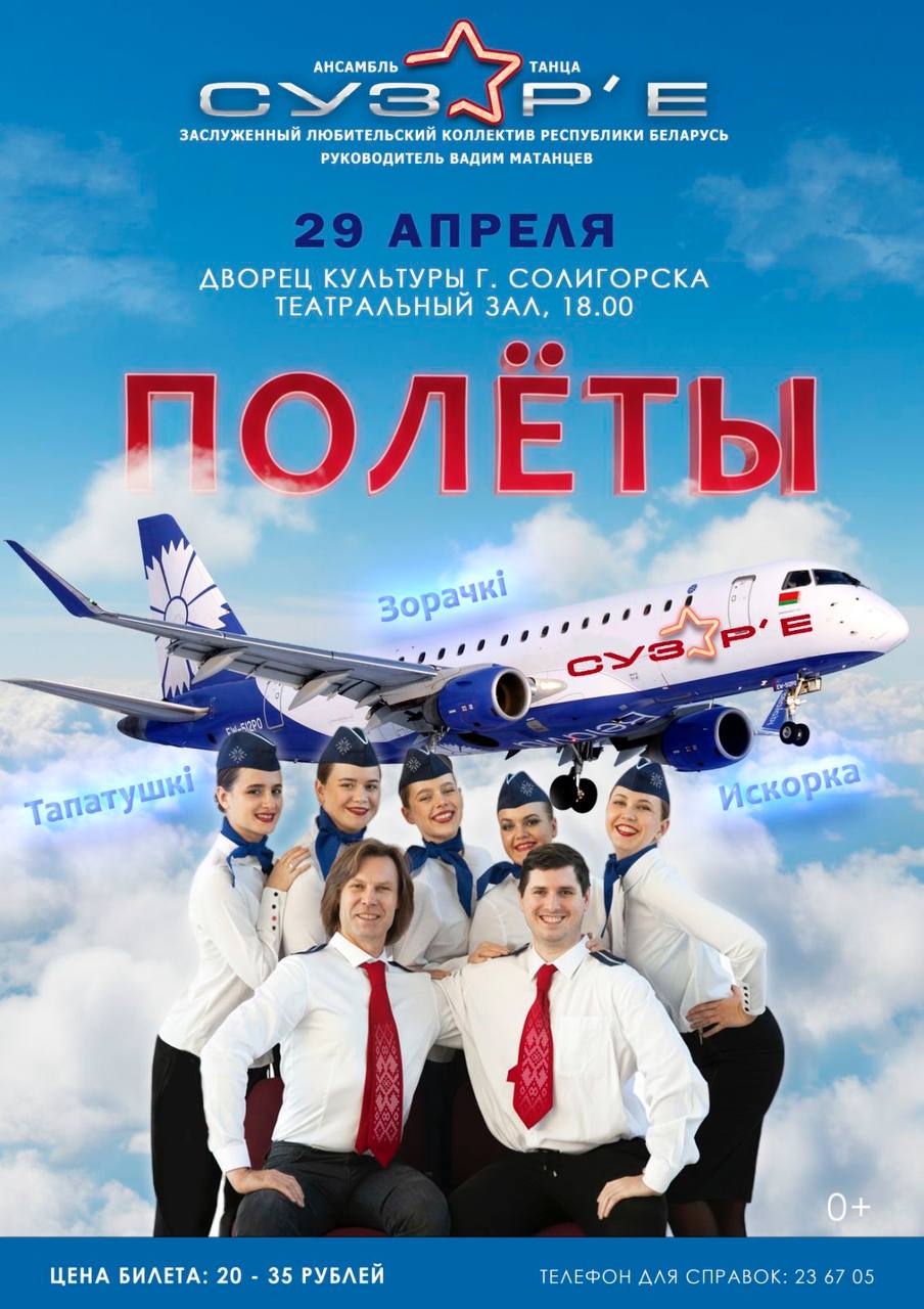 29 апреля Заслуженный любительский коллектив Республики Беларусь ансамбль танца «СУЗОР’Е» приглашает вас на борт! Мы отправляемся в захватывающее путешествие в мир ритма, грации и невероятной энергии.