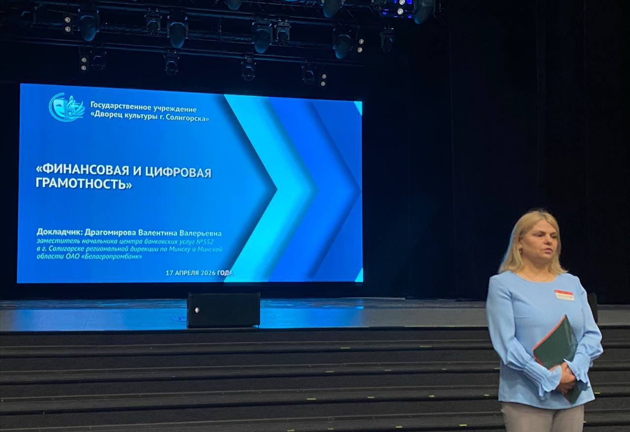 🔹Драгомирова Валентина Валерьевна, заместитель начальника центра банковских услуг №522 в г. Солигорске региональной дирекции по Минску и Минской области ОАО «Белагропромбанк» с темой «Финансовая и цифровая грамотность».