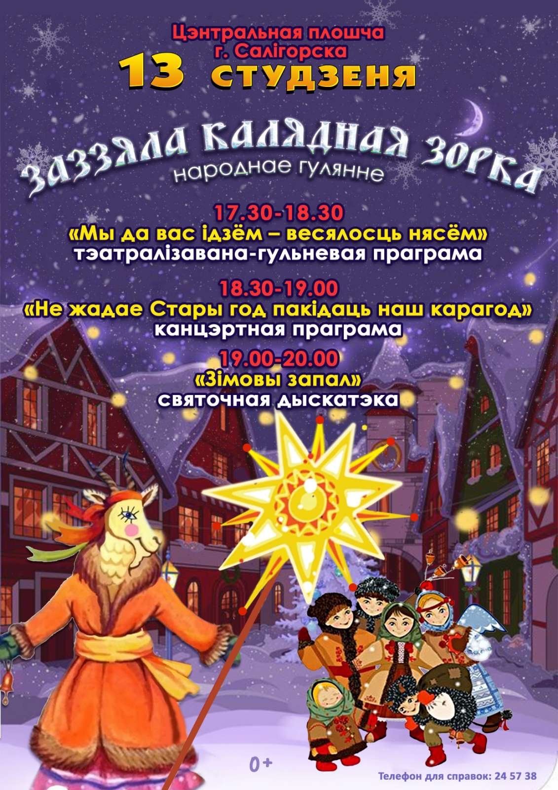 13 студзеня 2026 года на Цэнтральнай плошчы г. Салігорска пройдзе традыцыйнае народнае каляднае гулянне пад назвай «Заззяла калядная зорка». Пачатак мерапрыемства а 17.30.