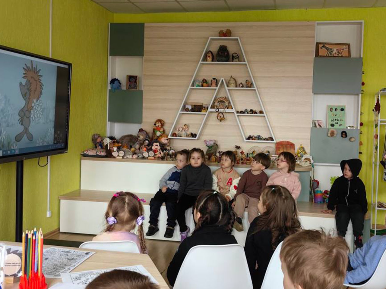 Ребята не просто посмотрели на экспонаты — они подружились с колючими героями. Вместе с ёжиками малыши делились своими секретами о дружбе, узнали много нового о жизни этих удивительных зверьков и даже заглянули в мир доброй анимации.