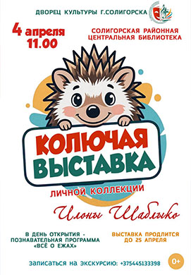Выставка личной тематической коллекции различных ежиков или предметов с их изображением, собранная Илоной Шаблыко за время ее профессиональной деятельности и не только.