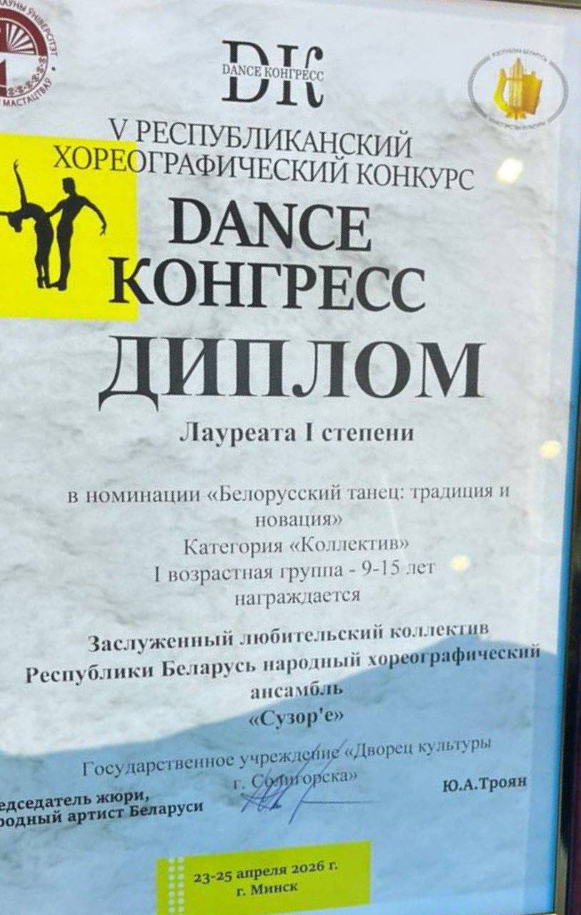 🏆 Заслуженный любительский коллектив Республики Беларусь народный хореографический ансамбль «Сузор’е» (руководитель Вадим Матанцев) Дворца культуры г. Солигорска возвращается домой с победой!