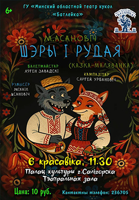 6 красавіка Салігорск запрашае маленькіх і дарослых гледачоў на сустрэчу з героямі Мінскага абласнога тэатра лялек «Батлейка». Вас чакае цудоўная «казка-маляванка», пастаўленая па матывах любімых народных сюжэтаў.