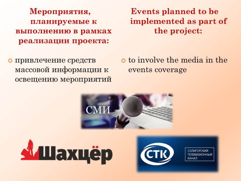 Further activities at the end of the project | Use of purchased equipment for holding cultural events in Soligorsk district, including with the participation of people with disabilities. |