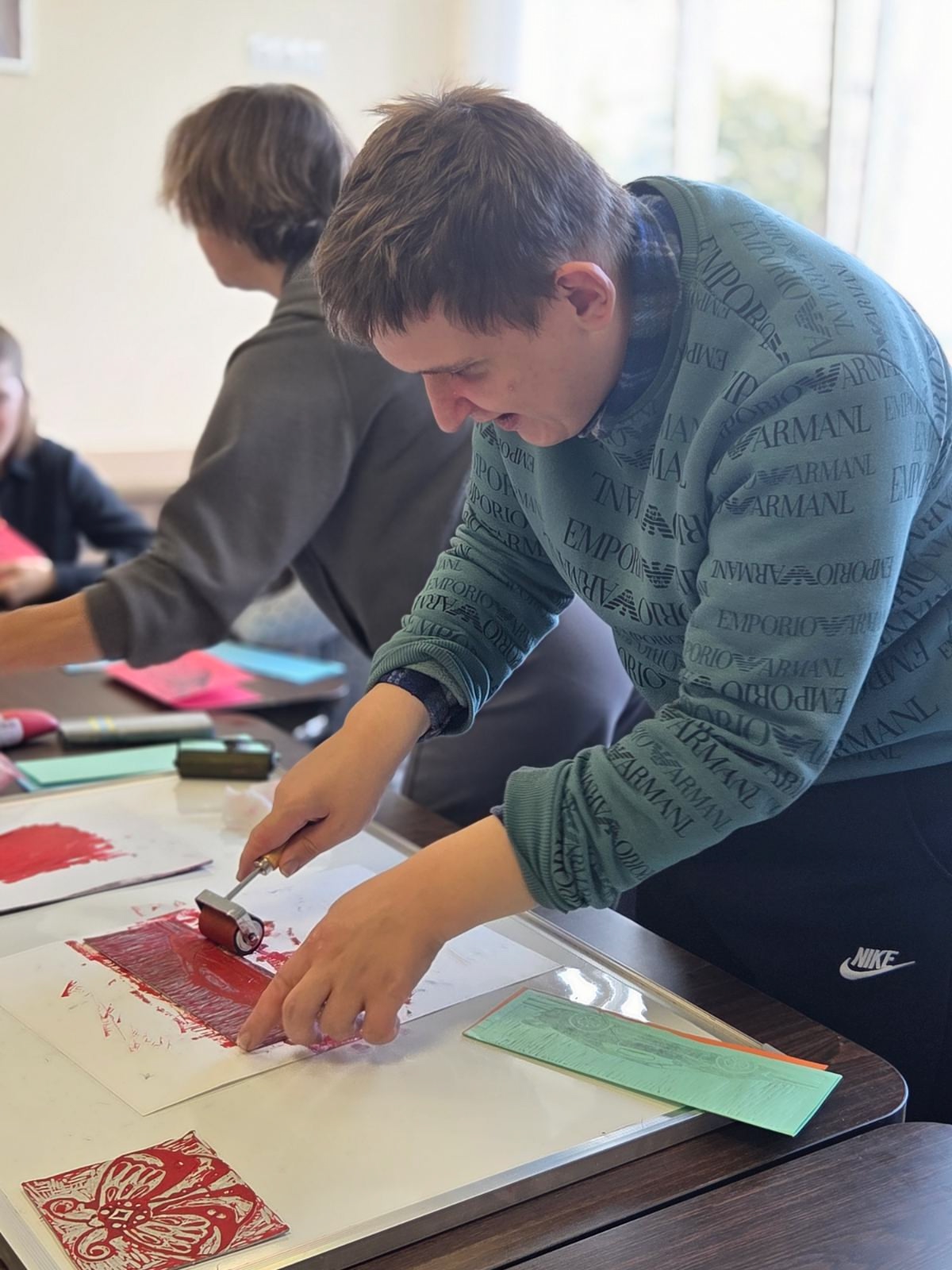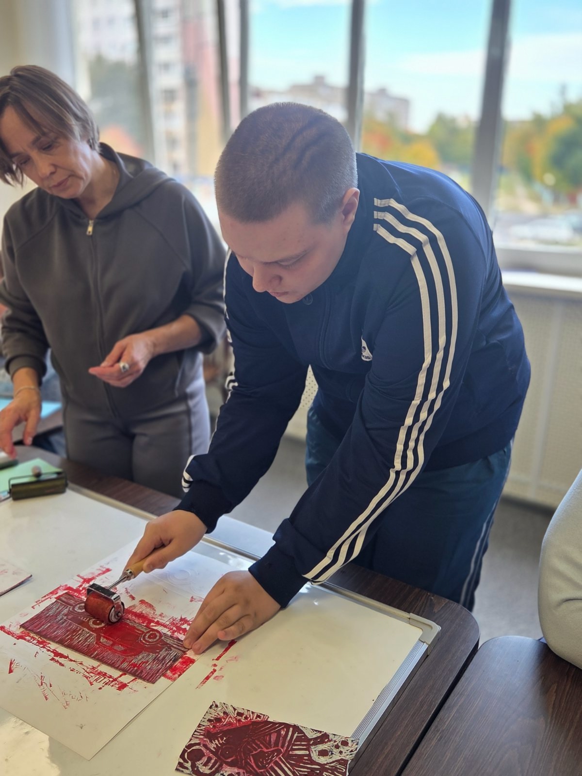 В ходе мастер-класса под руководством педагога Вабищевич Ирины Александровны воспитанники отделения социальной реабилитации и абилитации инвалидов освоили технику линогравюры и на практике создали печатные оттиски с использованием профессионального печатного станка.